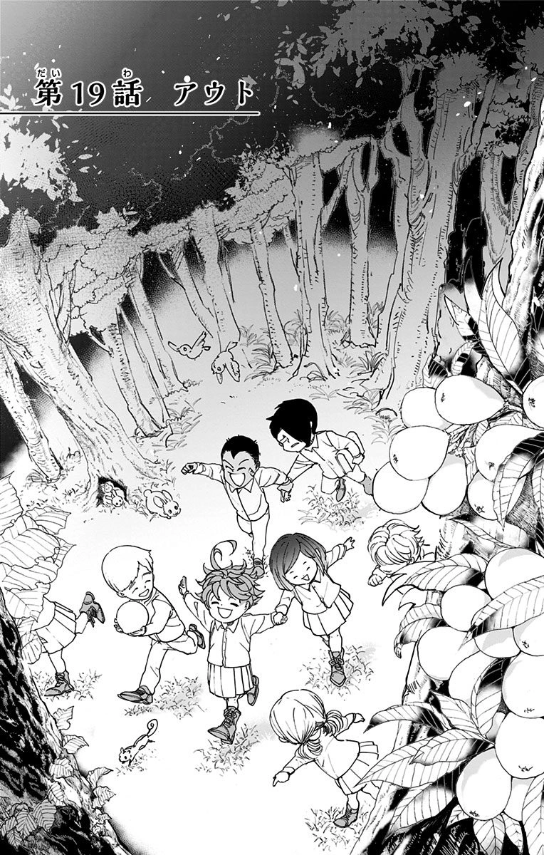 Doomed (アウト, Auto?) is the nineteenth chapter of The Promised Neverland manga. It is adapted into episode 6 of the anime.