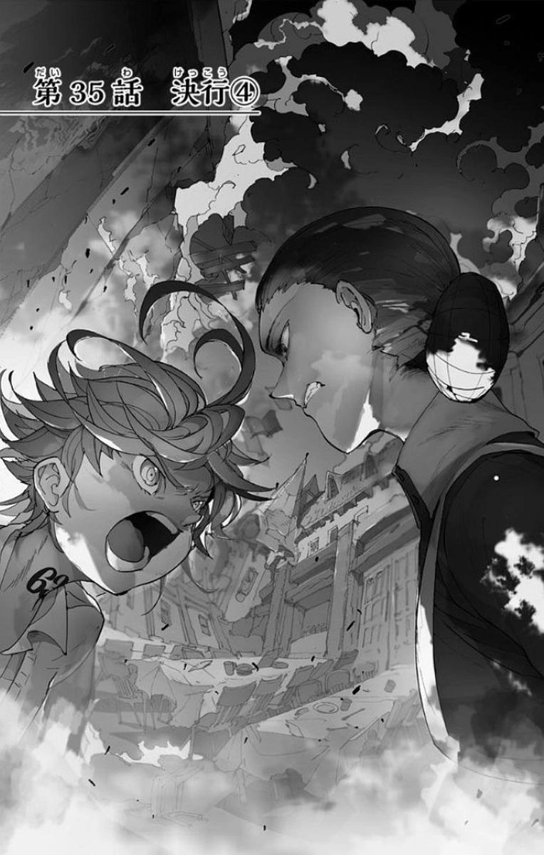 Atop the wall, Ray has noticed that those four years old and younger are not present. Flashback to one month ago. Don and Gilda report to Emma that those who are at least five years of age have been drawn into their plot. When asked what should be done about those who remain, Emma, naturally, wishes for them to escape with everyone. However, Gilda has a negative outlook about this as she says that the circumstances are different from what they previously believed, and she also asks if “everyone” includes the children from the other plants. After some troubling thought, Emma asks for Phil to be brought to her. When he arrives, she explains the circumstances of the situation to him. Phil: “Ah... so that’s what’s going on.” From observing the state that everyone has been in recently, Phil had come to the realization that somehow, something terrible was going on. Emma opens up to Phil about being lost as to whether to bring everyone with them in the escape or to leave behind those who are younger than four years old. She explains that even if all of the older kids are gone, they estimate that the younger kids will have at least two years before their shipment is set. Phil chooses to stay there and wait obediently for their return. Standing on the wall, Emma swears that they will return within the space of those two years to rescue the children from all the plants. Phil leads Isabella into the forest, where all the younger children had been evacuated. Mama sees nothing suspicious about the crying children who remain and quickly grasps that only those who are over five years old have gone with the escape. She reports the escape using the radio that she extracted from the basement, and alarms go off throughout the entire facility. One of the demons said: “You can kill any child that isn’t exceptional. If they show themselves, capture them immediately."
