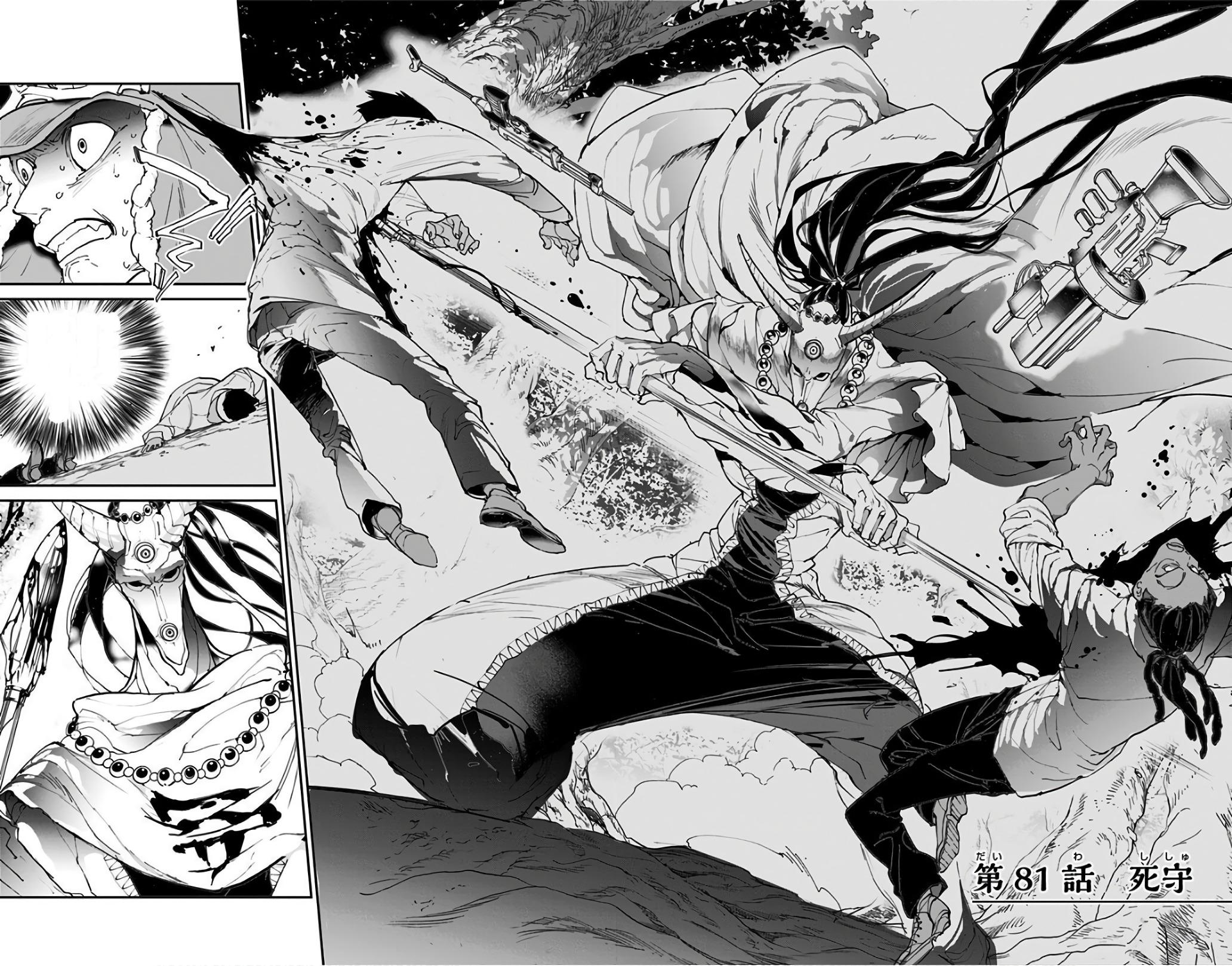 ![]() After Leuvis stabbed Emma, Ray, and the others sought to kill Leuvis to avenge her. Meanwhile, Emma started to have a series of flashbacks and hallucinations as they gave her the strength to stand up. With the combined strength of Ray, Mister, Nigel, Violet, and Emma, Leuvis was finally killed with Mister having the killing shot. | |||||