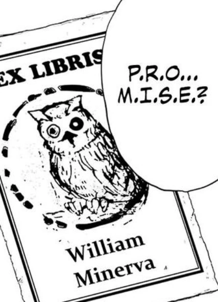 The books sent to Grace Field House by William Minerva are all very subtle messages for the kids, from what the orphanage wants to do with the kids to how to survive should they manage to escape. Minerva's stamp (ex libris) on the inner front cover of selected books has imperfections on the ring surrounding its owl emblem that, upon closer examination, spell out words in Morse code, for instance, and that is the least hidden of his messages.