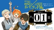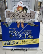 The Promised Neverland Special Exhibition (約束のネバーランド特別展) was an art exhibition held at the Mori Art Museum in Roppongi from December 11, 2020 to January 11, 2021.[1] Additionally, a cafe event called "Cafe Grace Field" was held next to the exhibition venue. The design of the cafe was based on Grace Field House and sold various foods and drinks themed to the series.[2] The exhibition was held again from March 17 to April 5, 2021 in Osaka.[3] From April 24 to May 9, 2021, it was held at the Nagoya Congress Center.[4] From July 3–25, 2021, it was held in Okayama.[5] From July 21 to August 16, 2021, it was held in Sapporo.[6][7][8][9][10][11][12][13]